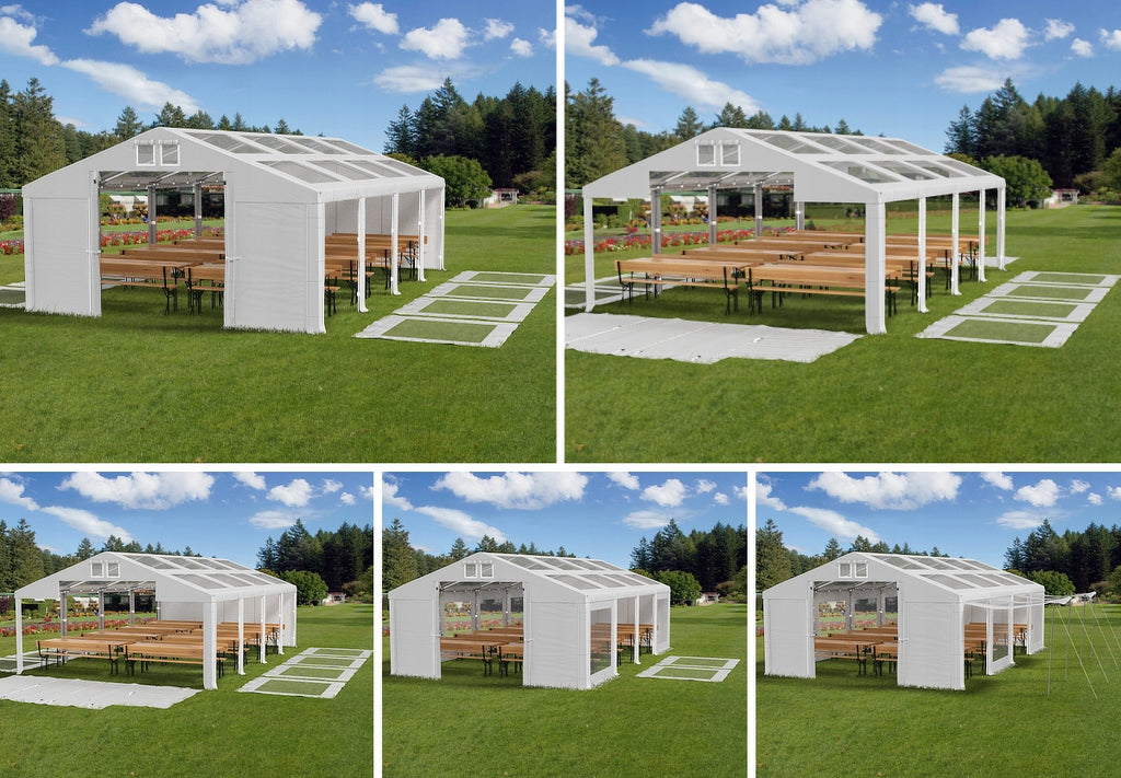 Teltīm ir iespējams pielikt klāt sienas. Telšu augstums ir regulējams un kājas ir viegli nostiprināmas pie zemes.